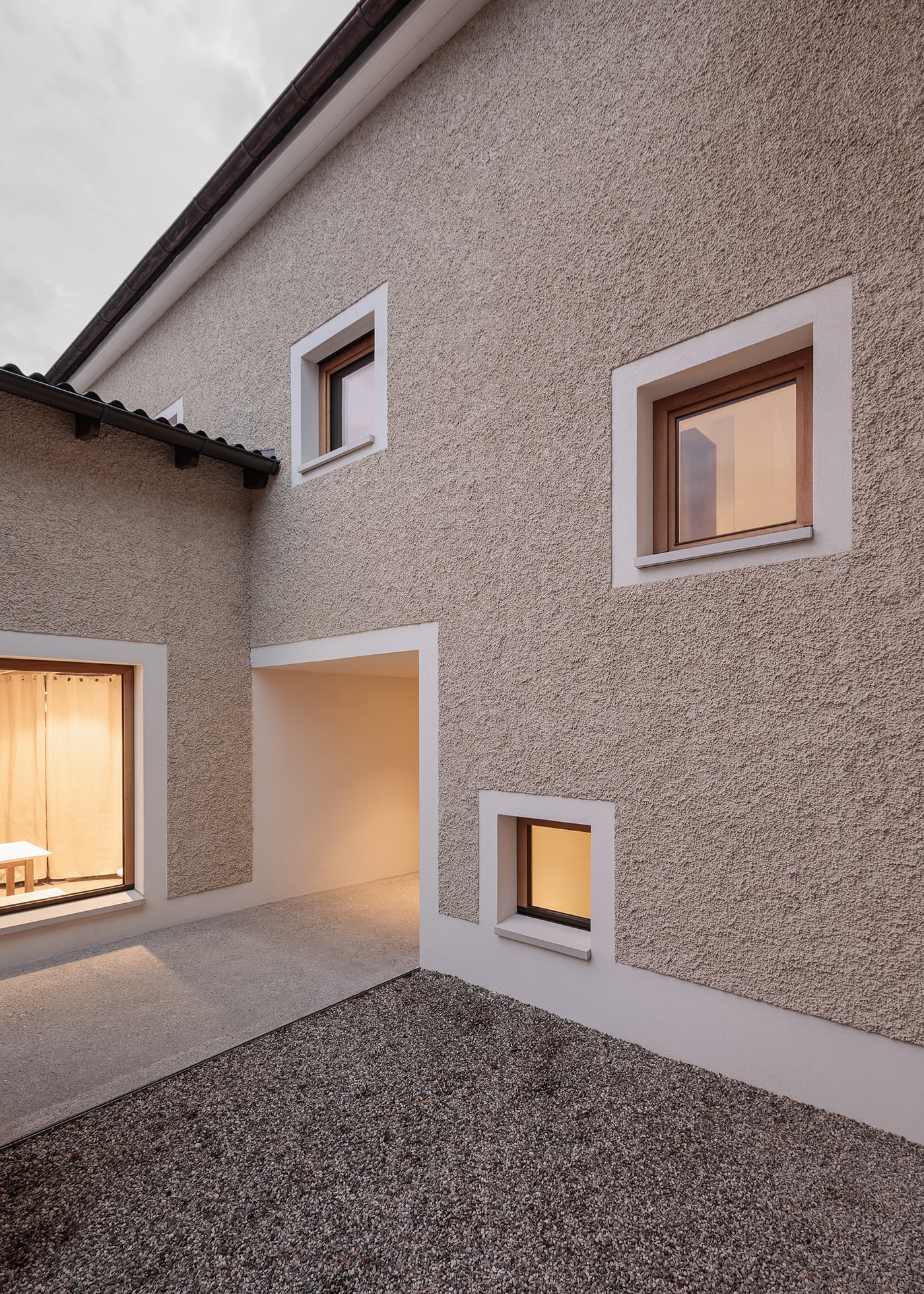 Nachhaltigkeit: Bauen im Bestand, Holzwolledämmung mit mineralischem Putz, Holzfenster, regionale Hersteller