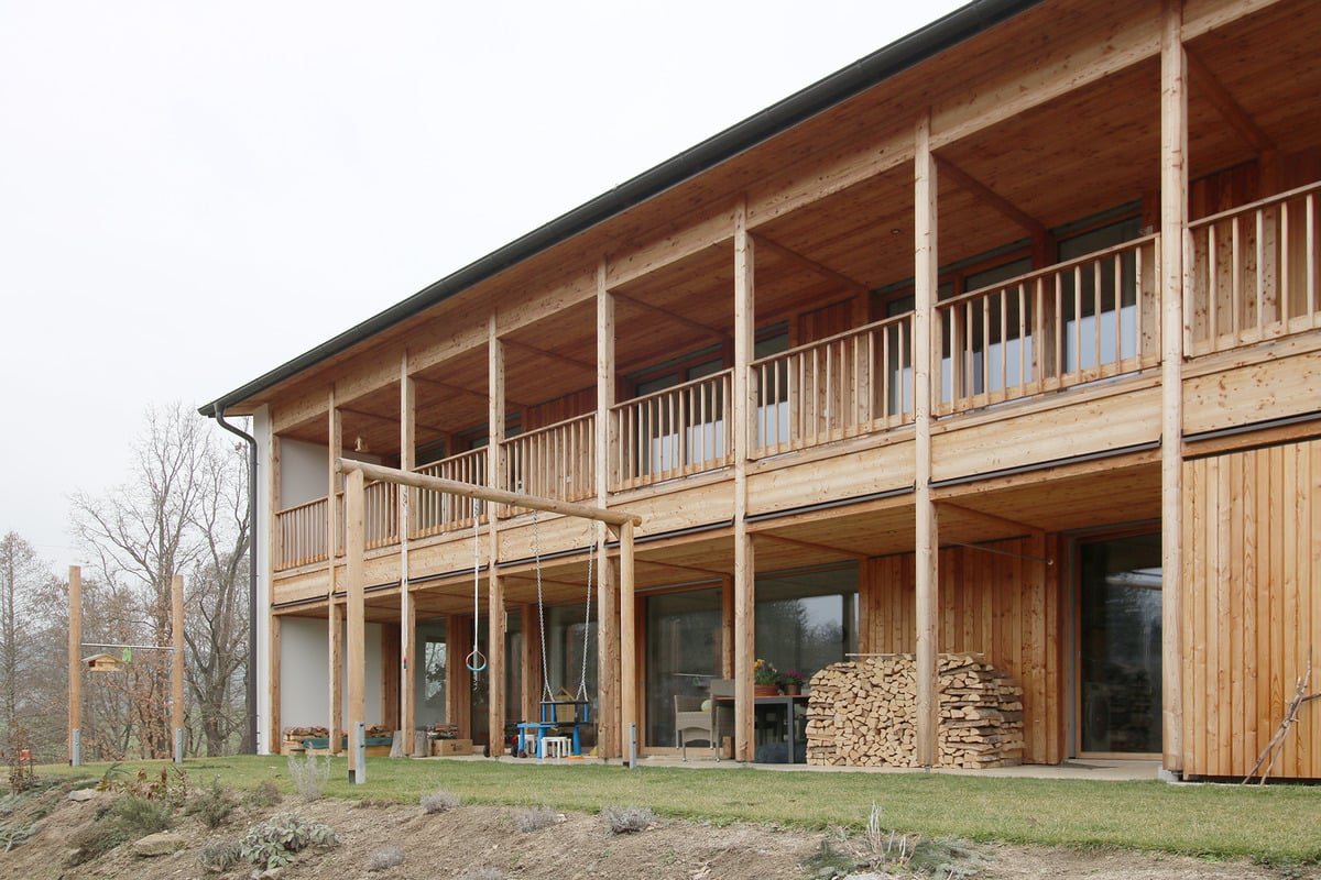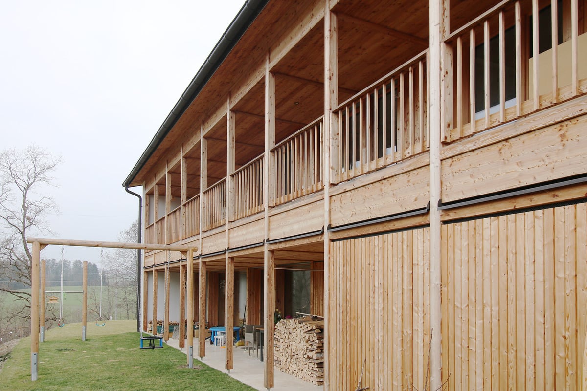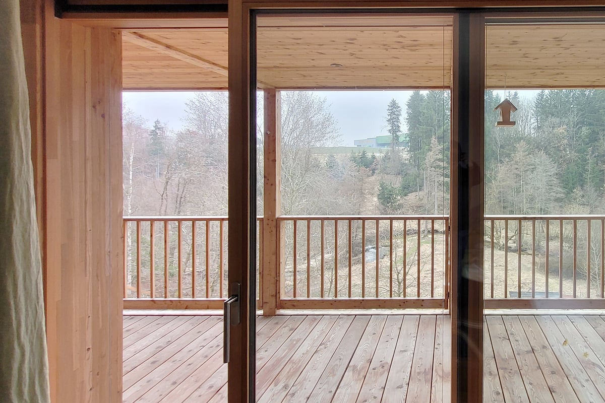 Struktur: Massivbauweise mit vorgestellter Holzterrasse